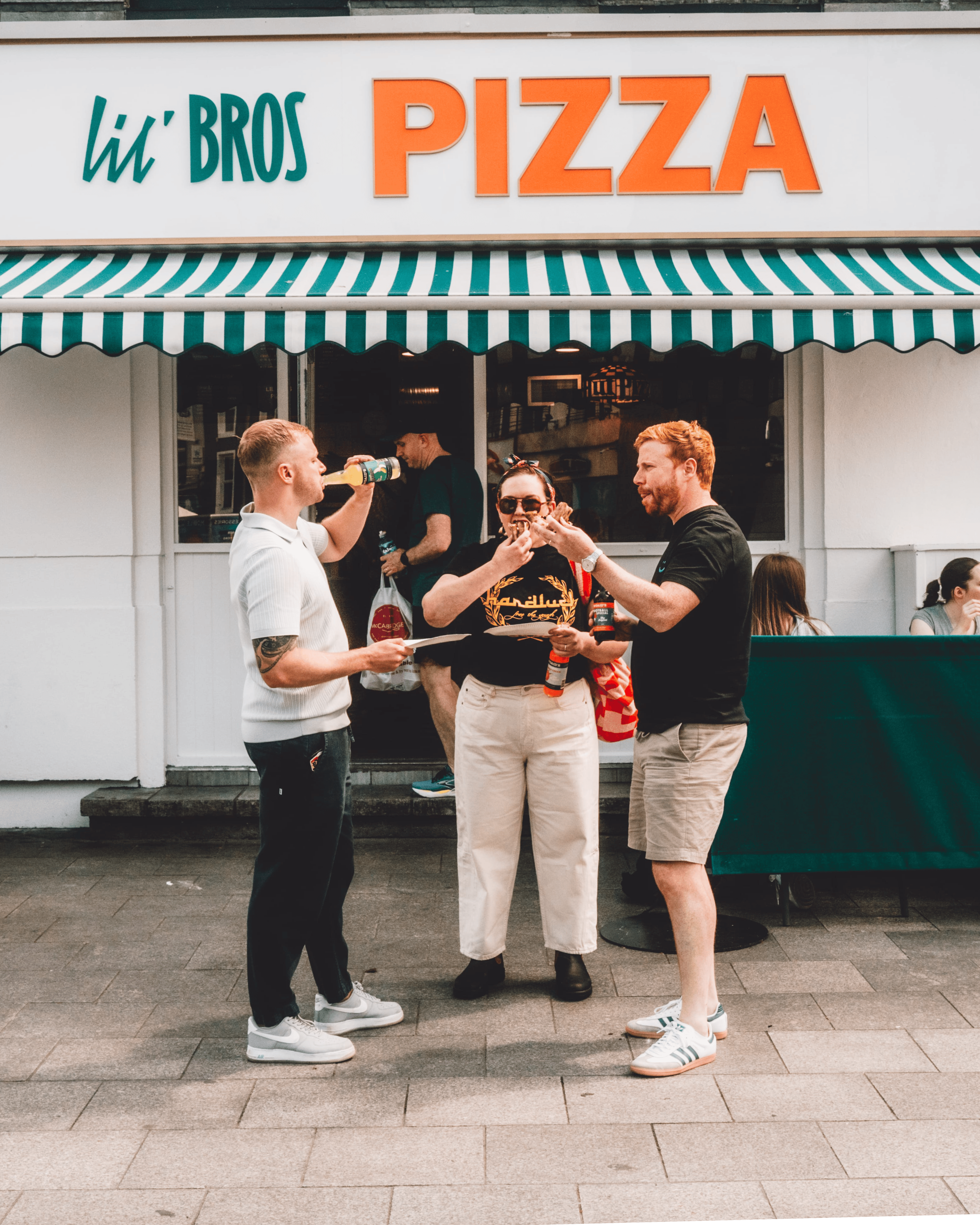 Lil' Bros' dough is made with five varieties of organic flour and ferments naturally over 48 hours with a sourdough starter.